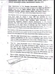 The stakeholders’ meeting provided a platform for frank discussions on the political future of Abak, with strong calls for respect for existing zoning agreements and the maintenance of peace as the political process unfolds.