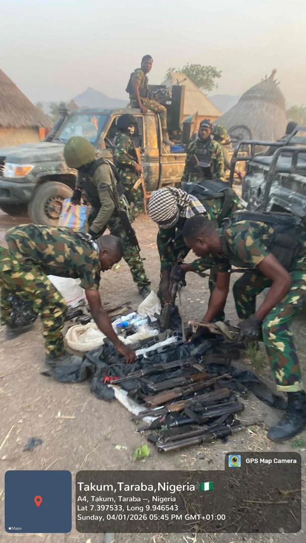 Troops of Operation Whirl Stroke (OPWS) have intercepted the wife of a notorious criminal kingpin, John Gata, and neutralised a major arms cache in Amadu Village, Takum Local Government Area, Taraba.